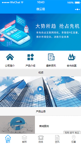 企业展示模块相当于企业的网络名片,不但对企业的形象是一个良好的宣传,同时可以辅助企业销售,企业可以利用小程序来展示产品、案例、宣传企业文化、发布资讯等,快速创建一个小程序官网,通过二维码扫描即可进入。